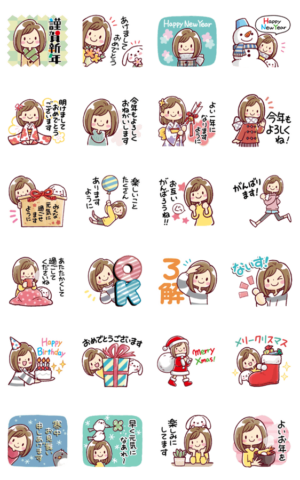 【再販】女の子がいっぱい! 水彩*年末年始 スタンプ画像一覧