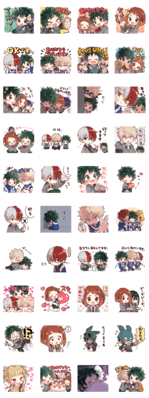 毎日使える元気いっぱいの「僕のヒーローアカデミア」スタンプができました! デク(緑谷出久)、かっちゃん(爆豪勝己)、轟くん(轟焦凍)、お茶子(麗日お茶子)多めです! ※LINE Creators Collaboration 僕のヒーローアカデミア参加スタンプです。はしもきくり より発売