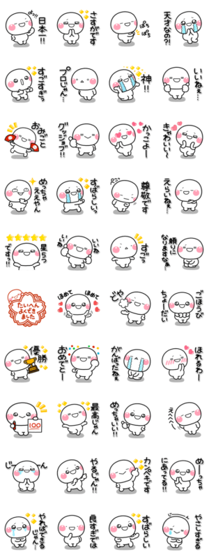 しろまるのみんなを褒めるやさしいスタンプです。ずっと使える内容を揃えましたのでスタンプ初心者の方にもオススメです。【作:いしいともこ】