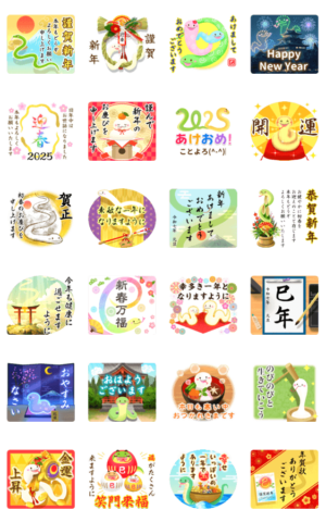 飛び出す♪2025年 巳年 あけおめスタンプ スタンプ画像一覧