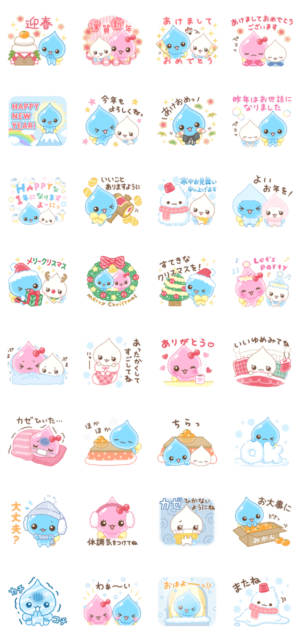 雨の妖精しずくちゃんとなかまたちの冬スタンプ登場★ クリスマス/年末年始/お正月の挨拶に使いやすい♪くーりあ より発売