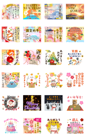 飛び出す!あけおめ年賀状バラエティパック スタンプ画像一覧