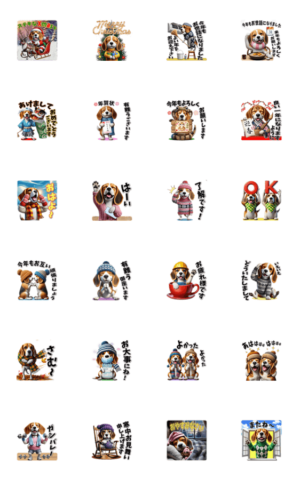 年末年始の気分を盛り上げよう!ビーグル犬があなたの挨拶を可愛くサポート。今だけの特別なスタンプをお見逃しなく!Masajii より発売
