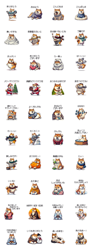 ずっと使える冬・年末年始のふとっちょ柴犬 スタンプ画像一覧