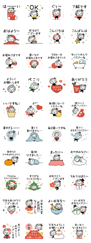 冬&年末年始♡ゆるボブGIRL2 スタンプ画像一覧