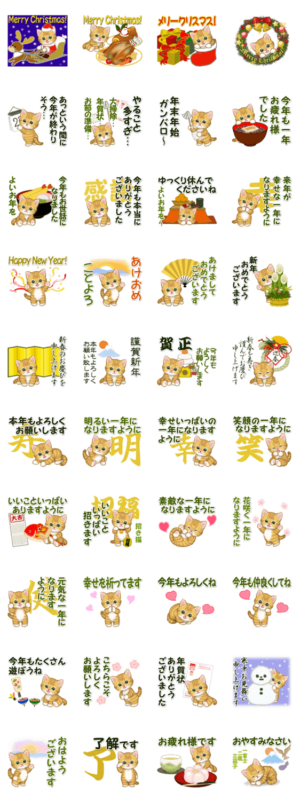 キラキラおめめの子猫 年末年始&招福の言葉 スタンプ情報