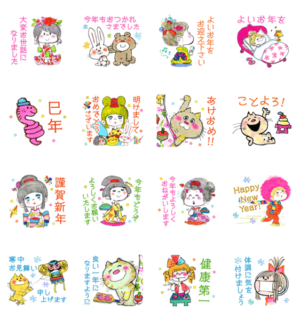 亜土ちゃんの巳年お正月スタンプが登場だよ♪お世話になった方へのご挨拶や新年のはじまりにぴったりのスタンプです。ネオス株式会社 より発売
