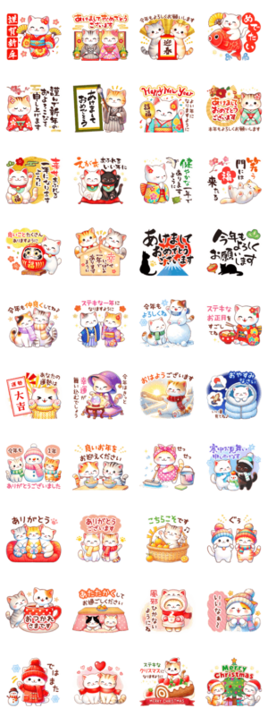 猫のつめあわせ【お正月】 スタンプ画像一覧