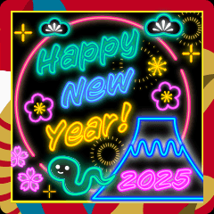 ネオン風デザインで新年の挨拶を華やかに!2025年を輝かしい年に!年賀状・お正月の挨拶・クリスマスや日常もあるから長く使える。#誕生日 #ヘビ #おみくじ #バレンタイン