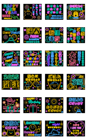 飛び出す!輝くネオン年賀状2025 スタンプ画像一覧