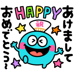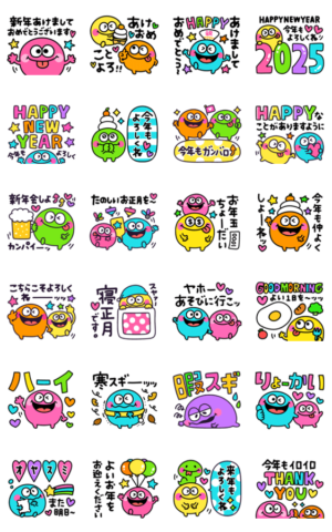 お正月/年末年始のご挨拶 カラフルなモンスターのスタンプですちゃぴ より発売