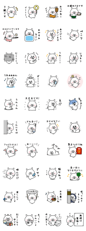 いつもよりちょっぴり小さなゆるうさぎのスタンプ。家族や友だち、彼氏彼女、恋人、ママ友、先輩後輩...毎日のトークに使えます。chococo より発売