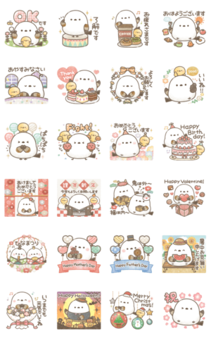 もちっと!シマエナガさん。の、1年中使える飛び出すスタンプです!(挨拶/正月/節分/バレンタイン/ひなまつり/母の日/父の日/暑中見舞い/敬老の日/ハロウィン/クリスマス)