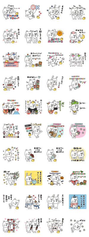 くまフレンズの一年中使えるイベントスタンプ♪ 日常/挨拶/誕生日/正月/節分/バレンタイン/ホワイトデー/母の日/父の日/七夕/ハロウィン/クリスマス/年末年始/卒業/入学