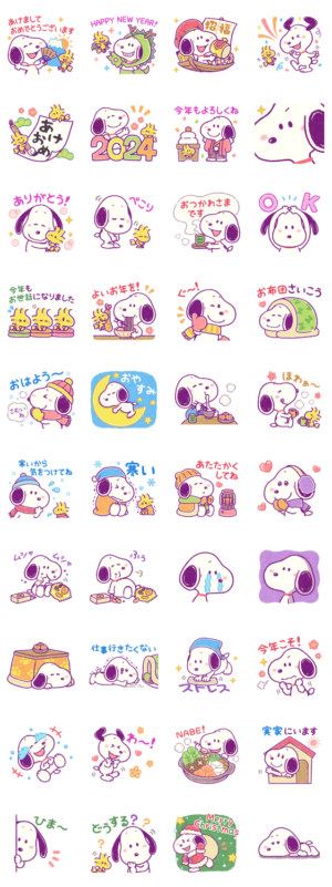 ゆるっとほっこり♡冬に大活躍のスヌーピースタンプが登場!可愛いスヌーピースタンプで冬のイベント&トークを楽しもう♪(あけおめスタンプ2024対象)
