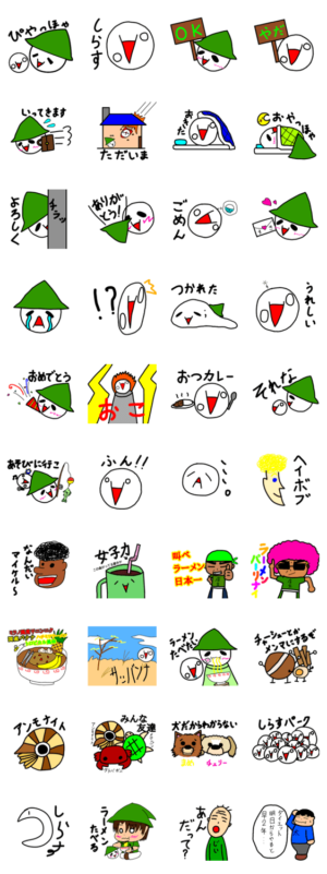 全部が詩人本人の手描きイラスト!歌い手(?)詩人のイメージキャラの「ぴやっほゃ('∀`)」「しらす(。∀°)」や動画に登場するネタのスタンプです。