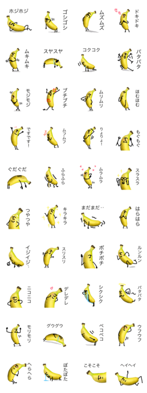 バナナキャラクターのバナナマン、シンプルな表現のみに特化しています。アフロ・モ・愛三 より発売