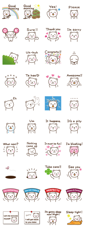 元気でかわいい、しろくまちゃんスタンプの英語版です。シンプルで、使いやすいセットです☆