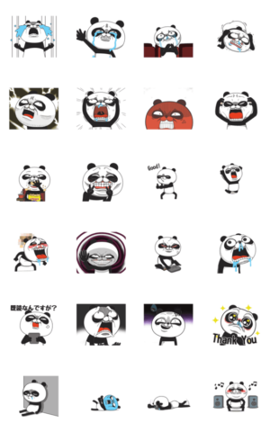 パンダのいかつい表情がとにかく笑えます。スタンプとしてのインパクトが高いので、使い勝手が良いです。目の釣り上がったパンダの表情は衝撃的です。
