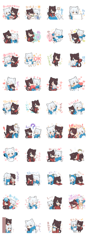 黒猫少年と白猫少年の毎日使えるスタンプです。日常会話やリアクションが沢山入っています。お友達や家族、恋人との会話にも是非。
