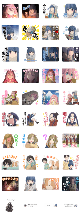 女の子たちがキャンプを楽しむ人気アニメのスタンプです。アニメの名シーンをラインに飾って楽しみましょう!