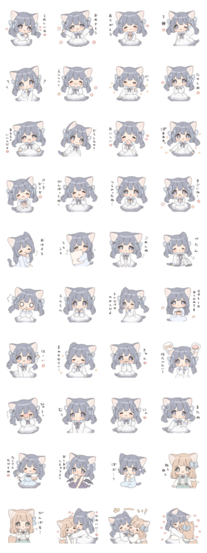 とっても優しい猫耳の女の子、なぎちゃんが癒しをお届けします。仲良しのお友達のここちゃんも一緒!飴うさこ より発売