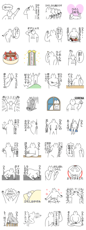 ひろしくんに送る流行の名前スタンプ。大好きな彼氏や友達に。 可愛い面白いシュールなヒロシさんへ。浩史、博志、洋、浩志、弘志、広志など。