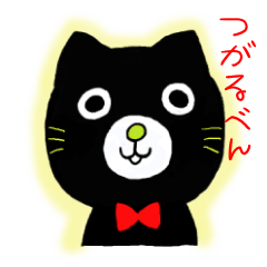 津軽弁のゆるかわ黒猫スタンプ。赤い蝶ネクタイが自慢。津軽弁で楽しく気持ちを伝えよう!