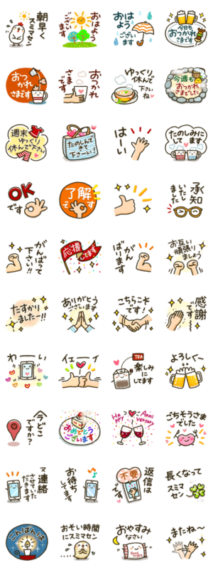 ソフトな敬語と日常言葉をセットにしたシンプルで使いやすいスタンプです♪