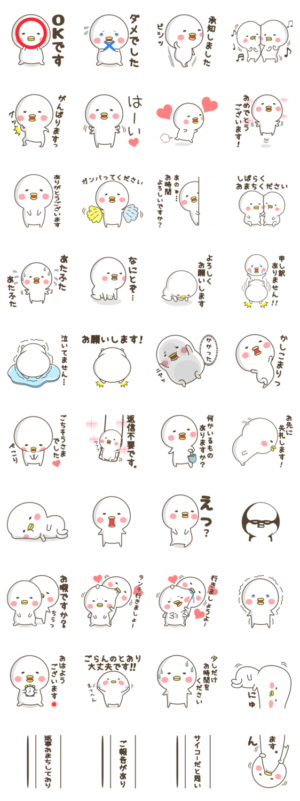 面白かわいいとりまるスタンプの敬語編です。ひよこともアヒルともとれるまん丸なとりまるの敬語スタンプです。ゆる敬語で上司や先輩など職場や学校で使えます。