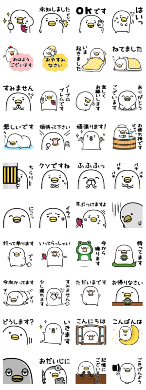 うるせぇトリ★敬語 スタンプに書いてある文字一覧