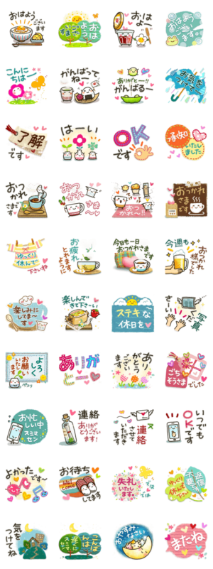 ソフトな敬語と日常言葉をセットにした便利なスタンプです♪ どなたでも使いやすいキャラなしのセットです!Honobono より発売