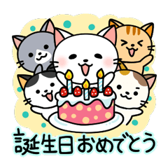 幸せ運ぶねこたちのおめでとスタンプ♪誕生日、たんじょうび、ハッピーバースデー、HAPPY BIRTHDAY、おめでとう、ありがとう、応援、乾杯、結婚、出産、なんでもお任せ◎