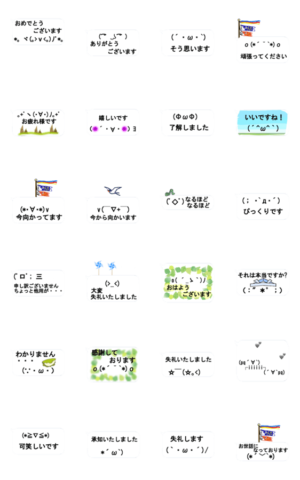 桜も散った頃の春をテーマにした動く絵文字です。 敬語が多いです。InnovativeNewWorld より発売