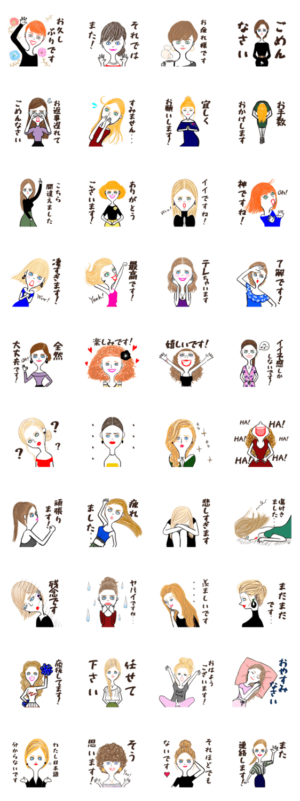 おしゃれで可愛い、外国のお姉さん達です。海外セレブ風から個性派の女子達で良く使う敬語をスタンプにしてみました!