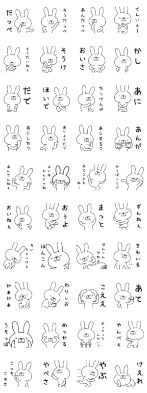 いろんな方言をつかううさぎのスタンプ房州弁編(房州弁ですが、千葉・茨城・埼玉・栃木、そうでない方ももしかしたら使えるかも。また違う県verに似た方言が見つかるかも)