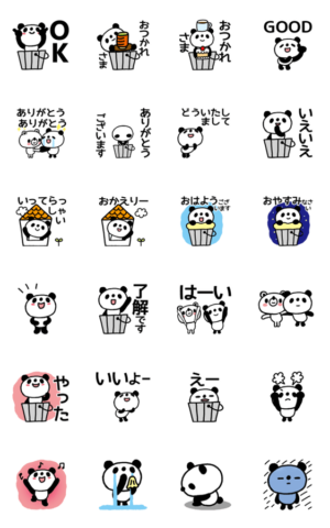 バケツぱんだ基本セットパート3。しろくまもちょっとだけ登場。ありがとう、OK、お疲れ様、がんばれなど日常会話のセットです。敬語は少な目。