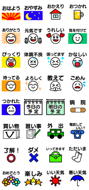 大文字で見やすいスタンプ。送信側、受信側どちらにも優しいデザイン。シニアに限らずどの年代も使いやすいものになっています。ぴぃ太ぱん より発売