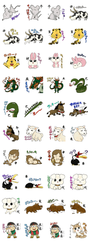 各干支が揃っているので長く使えるスタンプです。どれも可愛らしいですね。
