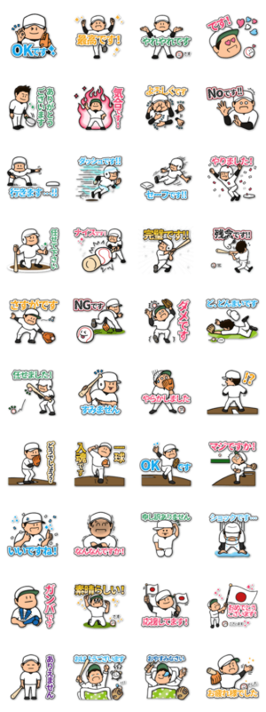 敬語の野球スタンプ★白ユニフォーム スタンプ画像一覧
