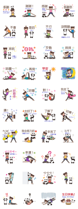 YOGA&パンダ好きさんのための中国語(繁体字)スタンプ。 大きめ文字です。日本語と中国語が表記してあるスタンプもあるので使いやすいです。