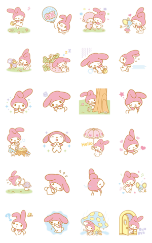 パステルカラーが特徴的なマイメロディの動くスタンプです。かわいいスタンプをラインに飾って癒されましょう。