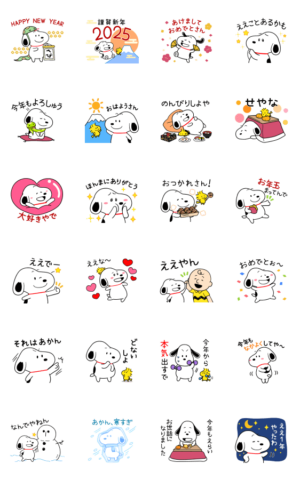 スヌーピーの冬の関西弁スタンプが登場!ゆるっとぽちゃっと可愛いスヌーピースタンプで、冬のイベント&トークをほっこりあたためよう♡(あけおめスタンプ2025対象)