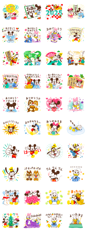 ミッキー&フレンズの年賀スタンプが登場!クリスマスから年末年始まで、挨拶はミッキーたちにおまかせ♪(あけおめスタンプ2025対象) 販売期間:2025/1/31まで