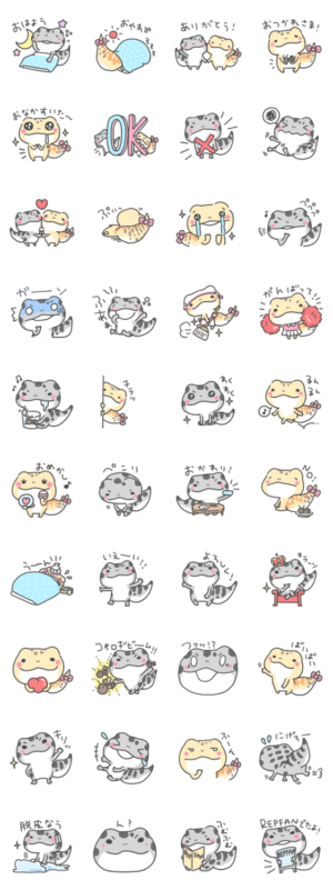 爬虫類雑誌レプファンの公式スタンプが新登場!第1弾は人気のレオパが可愛いキャラとなって登場。スーパーマックスノーとタンジェリン、2匹のレオパがメインキャラクター。