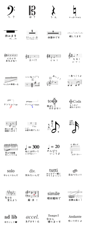 音楽記号達や実際の譜面をスタンプにしました。noraneko より発売