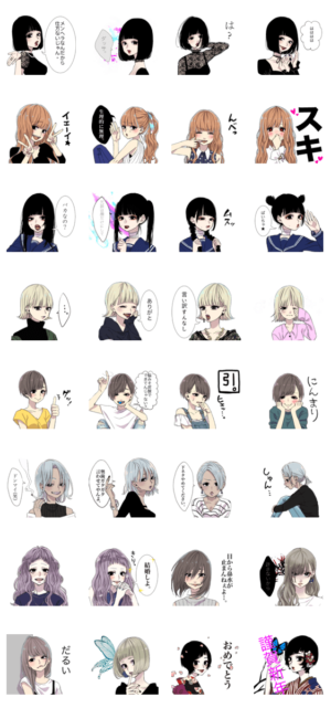 ファッションメンヘラ女子、ギャル、着物女子、毒舌女子色々な女の子のスタンプ。花菜 より発売
