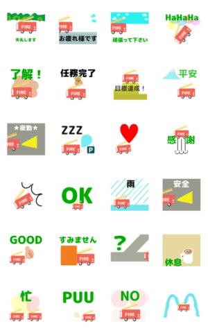 消防車や消防士さんを応援するためのアニメーションスタンプ。良かったら使ってください。2post より発売
