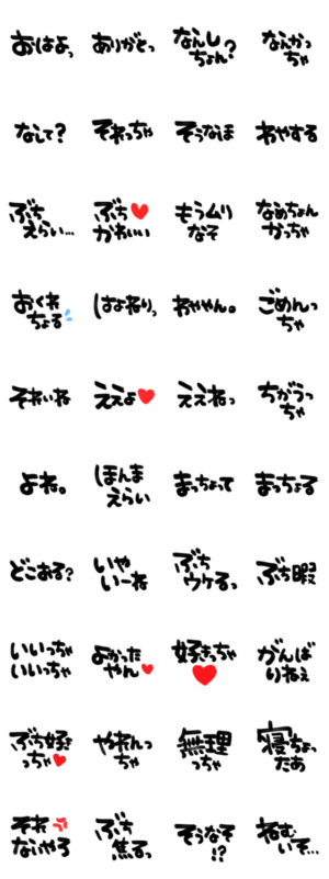 筆文字で中国地方の山口弁 ! シンプルで使いやすい大きな文字のスタンプです♪宇部・岩国などぴよたぬき より発売