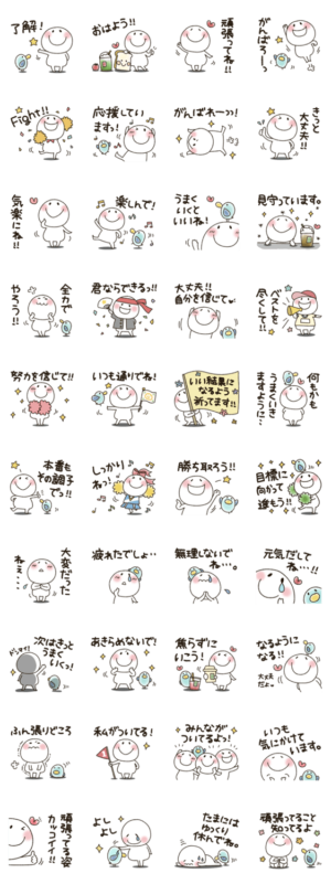 まるぴシリーズ17弾です。スマイルくんの受験生、部活、大会、試験、仕事、子育て、育児、スポーツ、頑張っている人に励ましの言葉や応援する気持ちを伝えるスタンプです。かなぴ より発売